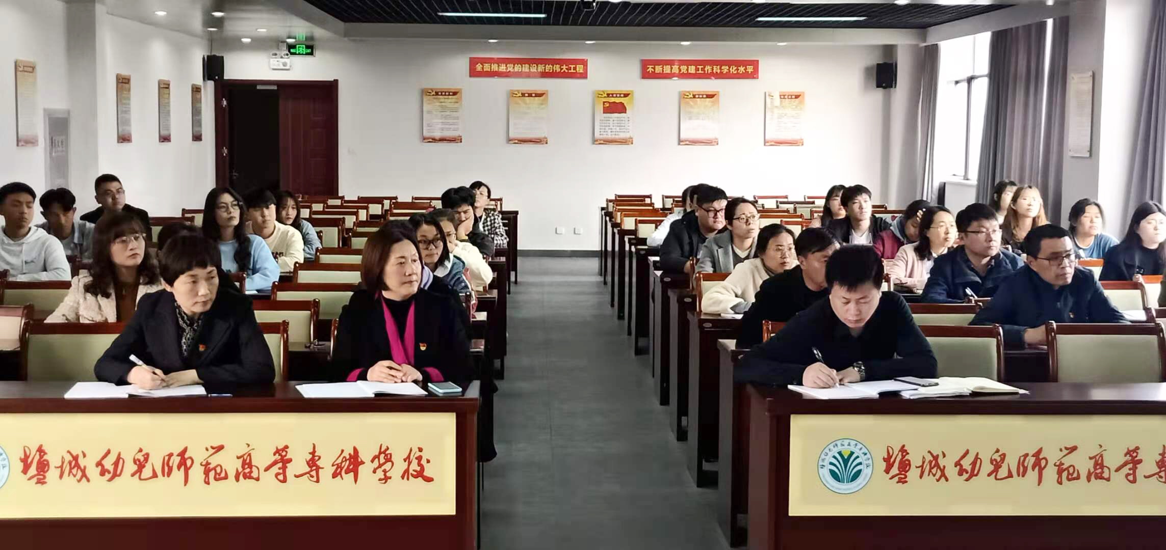 张慧娟副书记、副校长从“深入学习党史的重大意义”“中国共产党的百年历程与成就”、“努力汲取党史的智慧力量”三个方面展开,带领大家回顾百年波澜壮阔的奋斗历程史,以其精炼的语言、详实的历史资料和数据讲述了中国共产党从诞生之日起带领全中国人民进行艰苦卓绝的斗争史、奋斗史,百年之间所取得的巨大成就及所形成的中国特色社会主义理论体系、制度体系与实践成果。总结出,历史是最好的教科书,也是最好的营养剂和清醒剂。我们在重温党的百年光辉历程中,心中就会增加很多正能量,在回顾党领导全国人民进行的伟大历史斗争中汲取经验和智慧。在党史学习中,结合学校的红色鲁艺精神和盐城本地的铁军精神及江苏的恩来精神,深刻把握党史学习的精髓,传承和发扬党的成功经验。努力践行守红色鲁艺初心、担立德树人使命的理念。