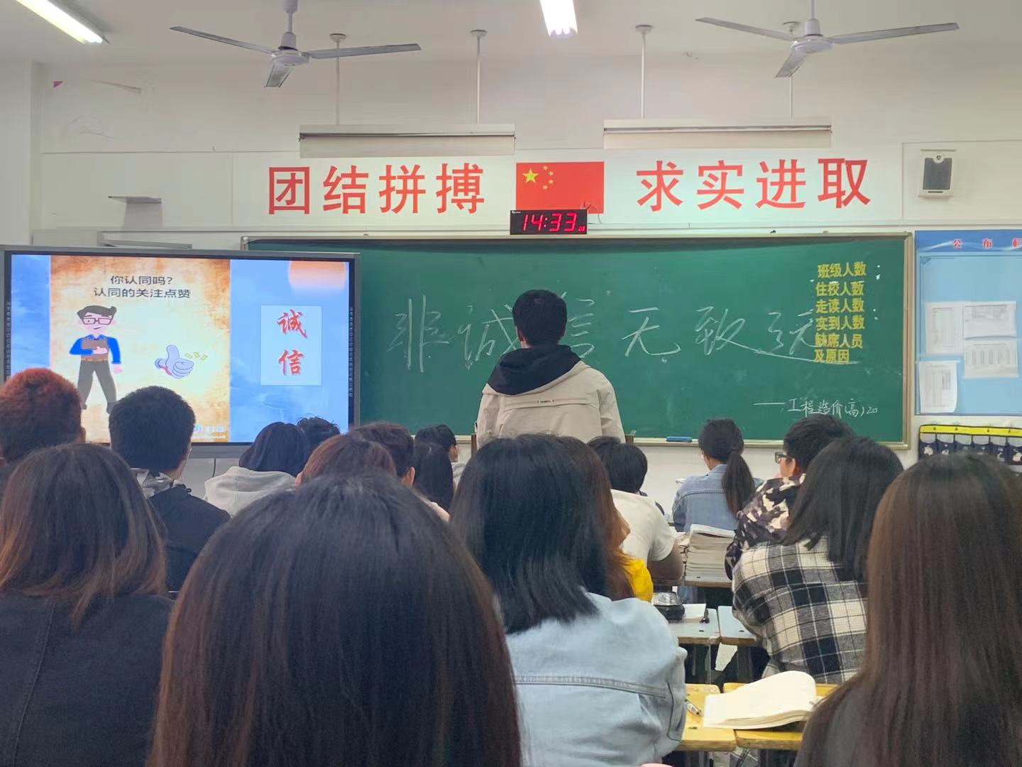 人无信则不立。5月26日下午,建筑工程学院在全院各班级开展了关于诚实守信的主题班会,让学生深刻认识到诚实守信的重要性,懂得如何在日常学习生活中更好地坚守诚信、踏实做人。