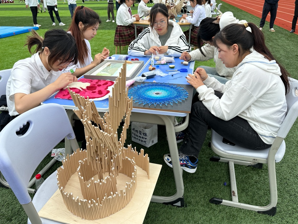 这些作品的制作很考验同学们的专注性和灵巧性,制作过程可以培养学生坚毅、合作、积极向上的心理品质,让学生的心情更加放松,心理更加专注,发挥“培根铸魂、启智润心”育人功效。