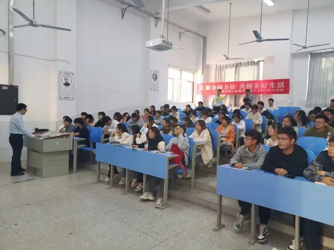 洪副行长首先用通俗易懂的语言向学生们讲解了电信诈骗的定义,接着列举了“刷单返利”、“虚假投资理财”、“虚假网络贷款”、“冒充客服”及“冒充公检法”这五大典型诈骗手段以及近期新型网络诈骗的典例,依次详细介绍了其定义、手段、真实案例及上当后的补救措施,揭露了电信网络诈骗常见套路,让学生们增强了“无论骗术怎么变,应以‘不转账’应万变”的意识。