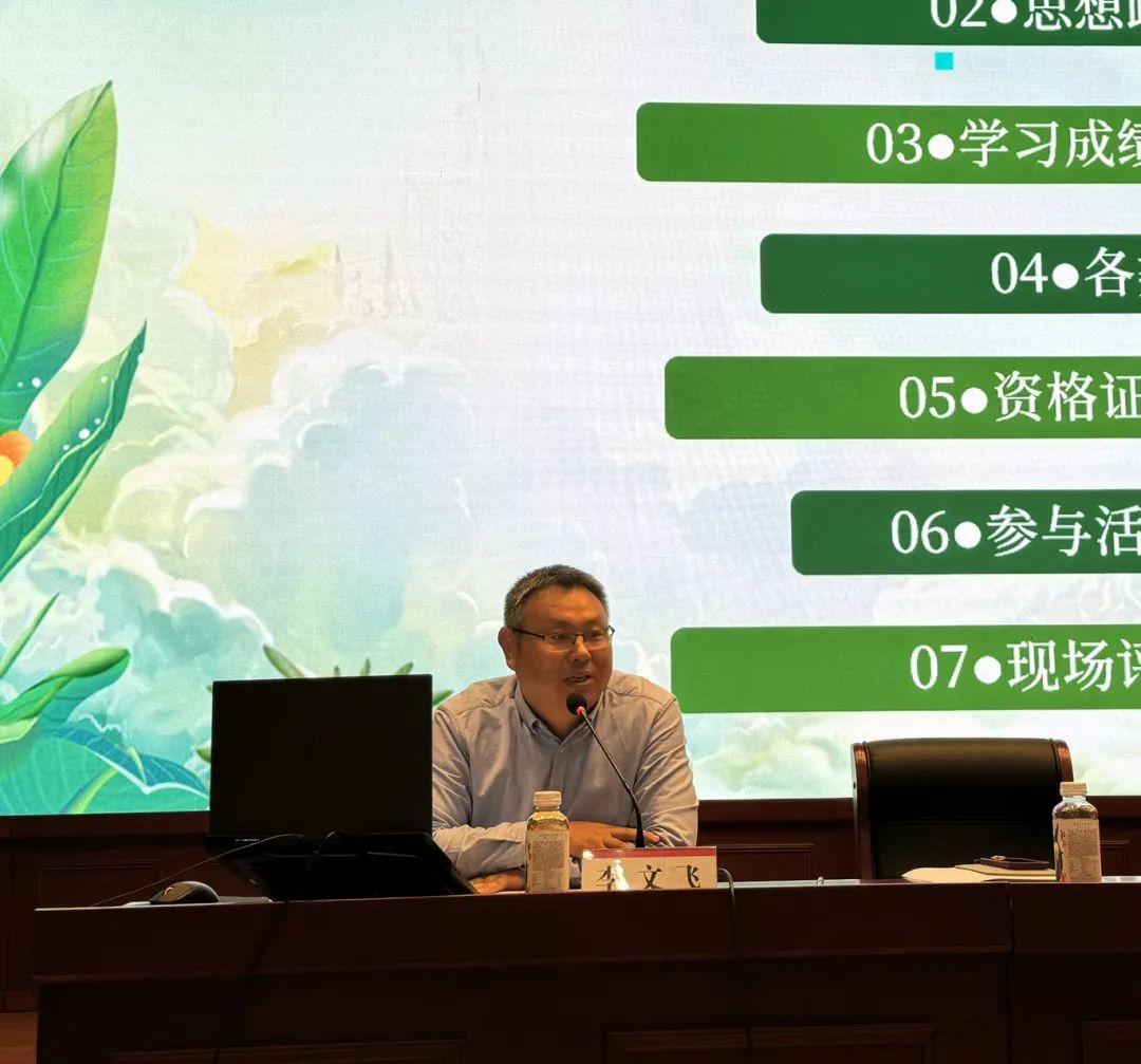 在入学教育环节,首先由学院学工院长李文飞发言,他以“获得国家奖学金”为切入口,号召同学们将学习作为一辈子的事,利用大好的青春年华多做学问,在自身专业领域深入思考、上下求索,把所学知识内化于心、融会贯通,把基础打深打牢,并鼓励同学们踊跃参加各类创新创业大赛和志愿服务活动,在中国式现代化的伟大实践中积累经验、增长才干,努力成为可堪大用、能担重任的栋梁之材。