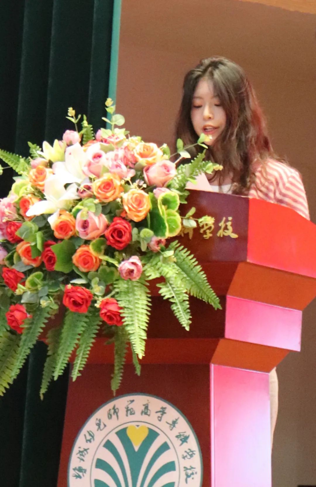 张金彤同学作为老生代表发言,分享了她获得国家奖学金的经历,她希望新同学们在盐城幼专,得良师相教,遇益友相伴,习过硬本领,创无限可能,脚踏实地,一路采撷,一路成长,书写属于自己的人生篇章。