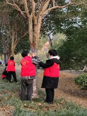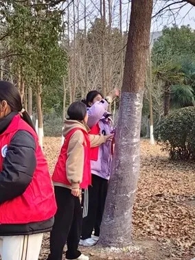 我院于3月开展“三月春风,护树靠我”的护树活动。组织志愿者更换去年的保温布以及保温膜,为树木迎春换上新装。