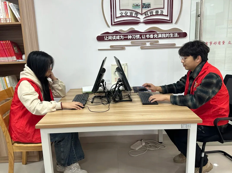 活动现场,志愿者们分成三组同步推进。在社区主干道上,同学们手持扫帚、簸箕,认真清扫早春时节飘落的梧桐叶,细致清理绿化带中的杂物,不到两小时就将社区广场及周边道路打扫得焕然一新。图书馆整理组的志愿者们分工协作,按照图书分类标准重新排列书架,对破损书籍进行加固修复,累计整理图书800余册。信息录入组的同学则利用专业技能,协助社区管理员将新到的300余本图书信息录入数字化管理系统,优化了社区图书资源管理效率。